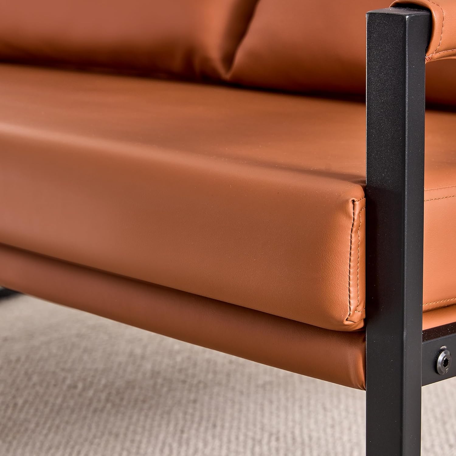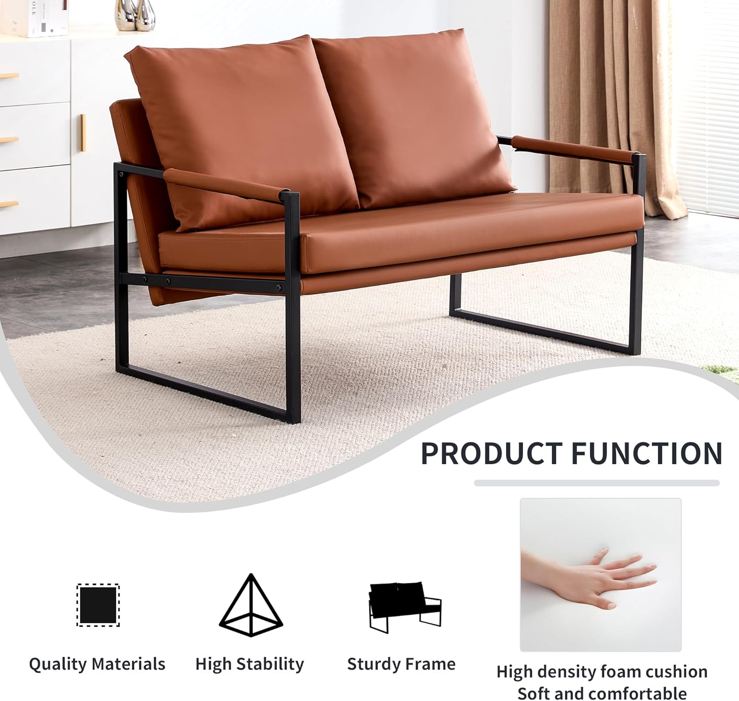 Rustic Faux Leather Loveseat Sofa Couch,Sleeper Sofa Bed for Small Living Spaces Bedroom Guest Room Apartment w/Metal Frame and Comfortable Cushions,Small Love Seats Couch,Easy Assembly (Brown)
