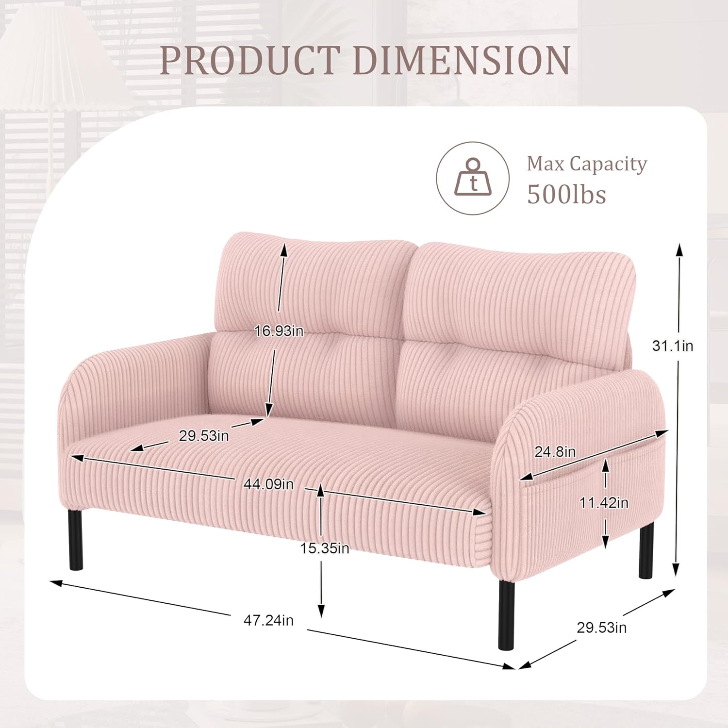 Comment on "Small Corduroy Fabric Accent Sofa, Comfortable Loveseat Couch with Double Side Pockets, Suitable for Living Room, Bedroom, Apartment (Orange)(Pink)"