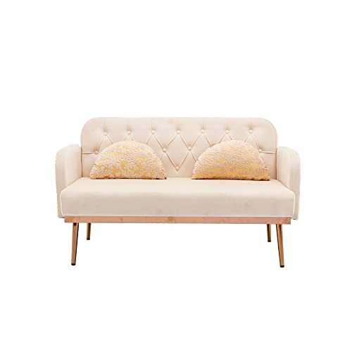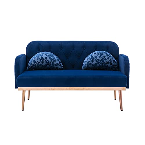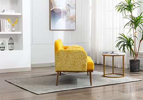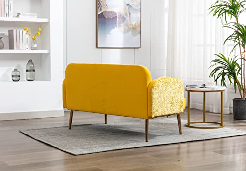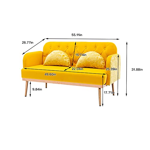 Small Velvet Couch, 55" Accent Sofa, Mid Century Modern Fabric, Recliner With Metal Feet, 600 Pounds Weight Capacity (Navy)(Yellow,55")