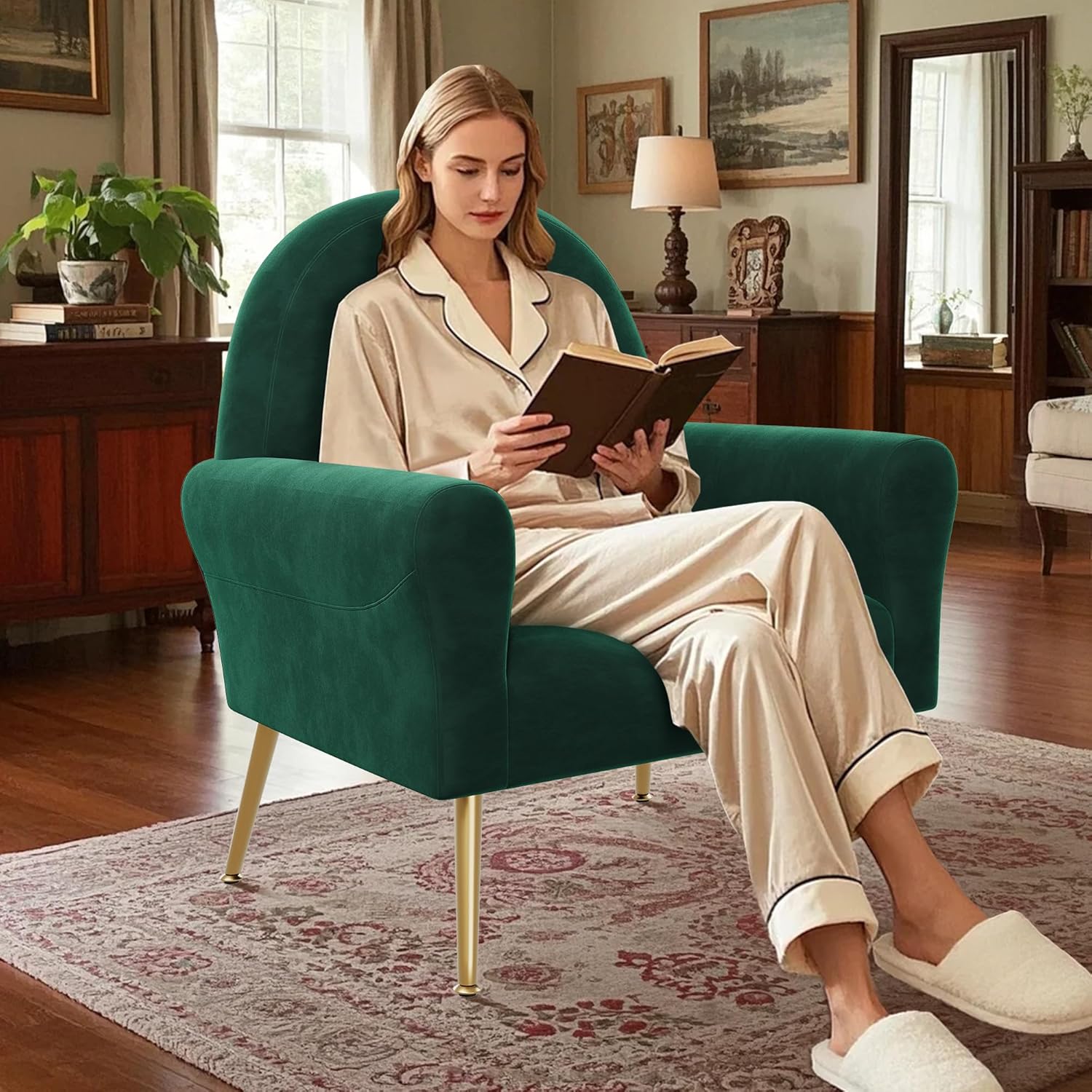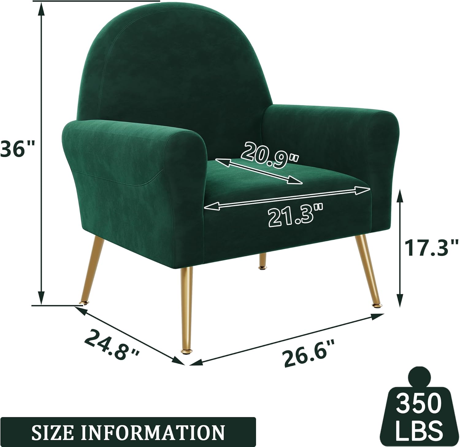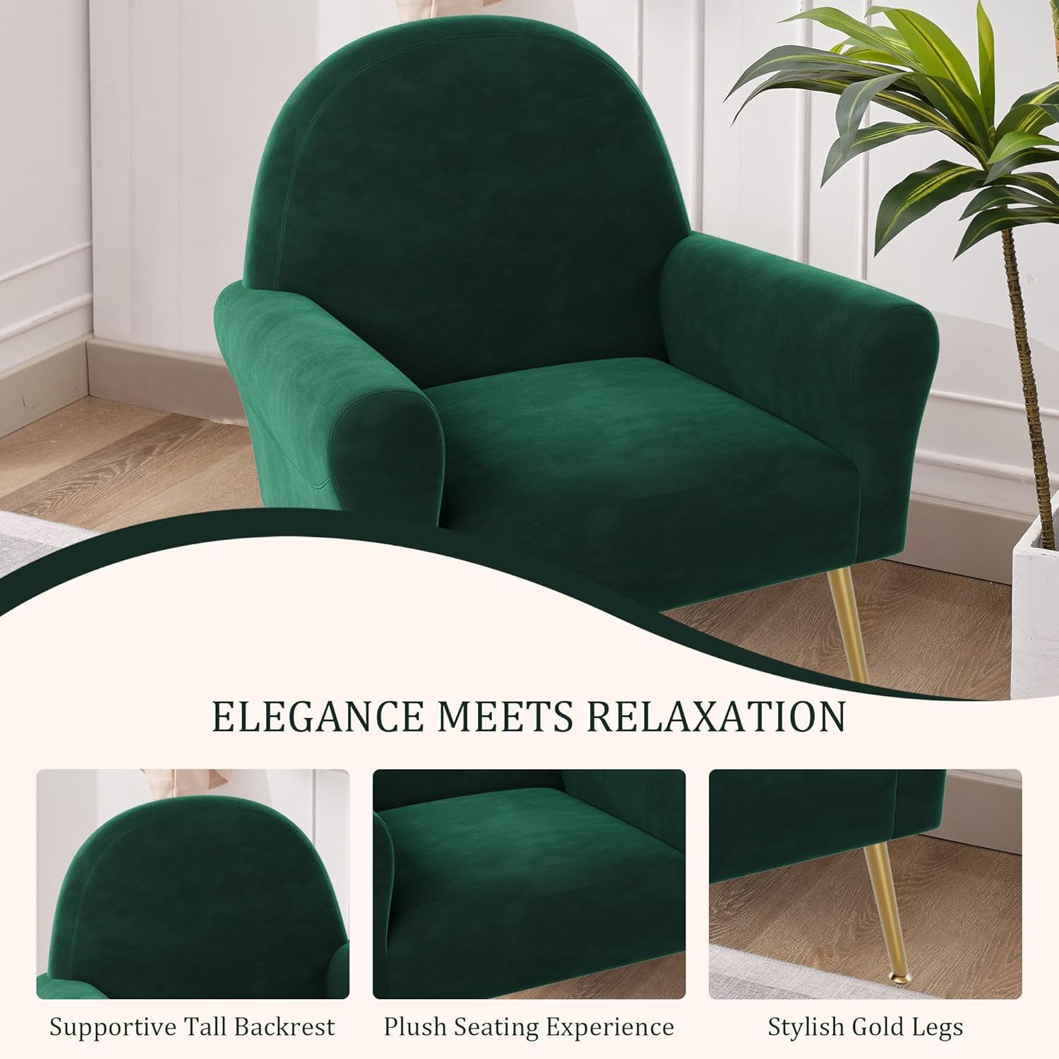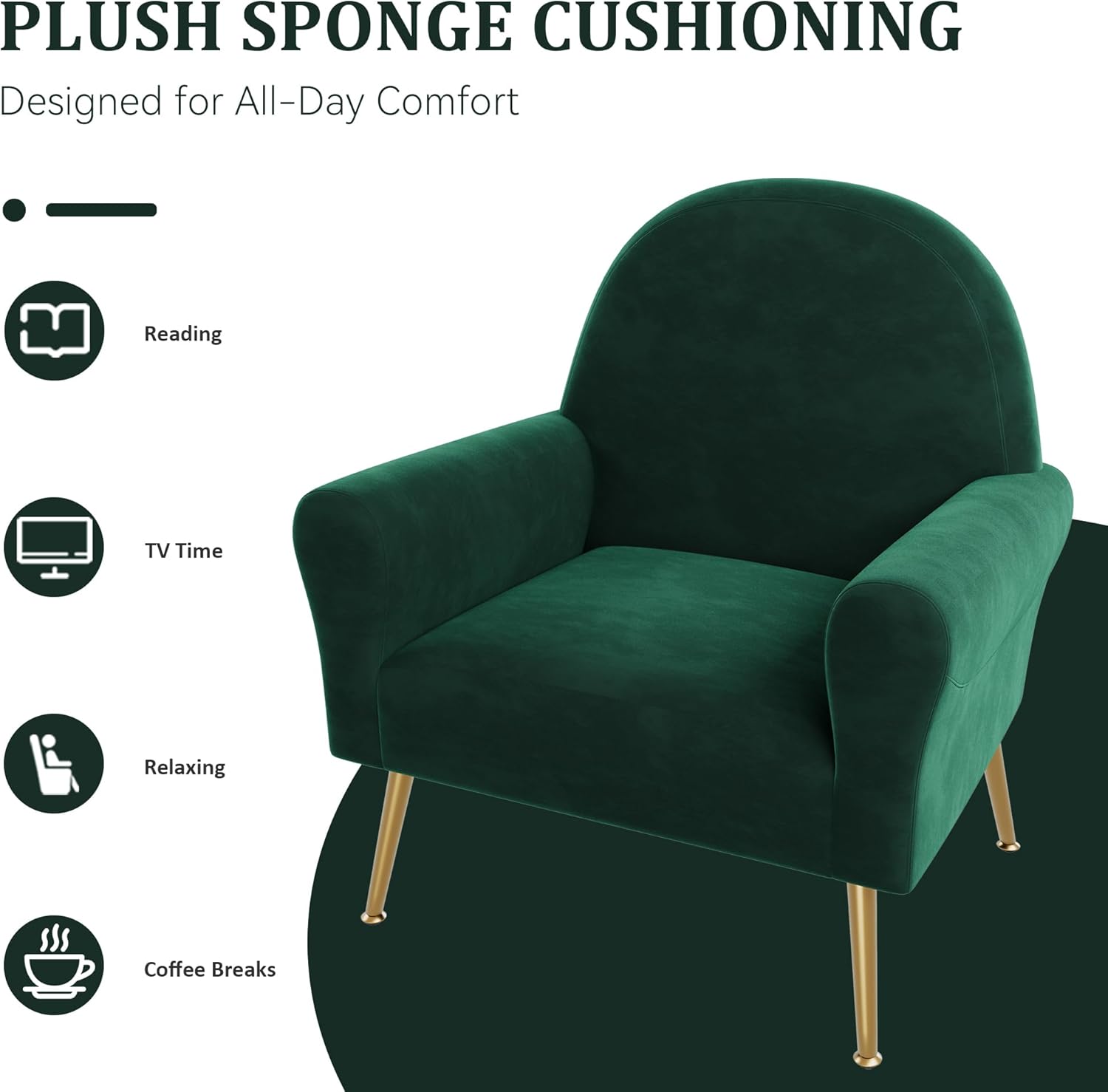 WENTMENT Velvet Accent Chair Modern Accent Chairs Upholstered Armchair Sofa Chair with Golden Legs for Living Room/Bedroom/Study/Waiting Room,Green(Green)